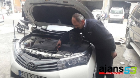 - Rize Sanayi Sitesi’de oto elektrikçisi Halis Topal'ın en büyük yardımcısı "Çakıl" adlı köpeği