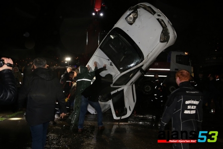 Ekipler tarafından yürütülen çalışma sonucu kıyıya çıkartılan araçta bulunmayan kayıp polis memurunu arama çalışmaları sürüyor.