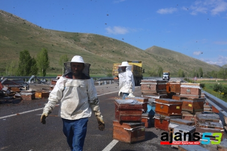 Kovanlardan çevreye dağılan arılar nedeniyle polis, jandarma, itfaiye ve sağlık ekipleri kaza yerine yaklaşmakta zorlandı.