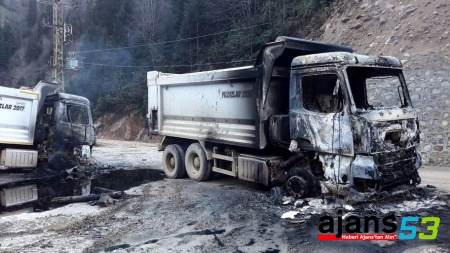 Ilıca köyü Çağrankaya yol ayrımında Rize-İkizdere kara yolu projesinde kullanılan, bir inşaat firmasına ait 61 K 12922 ve 61 K 12945 plakalı 2 kamyonun daha yakıldığını belirleyen jandarma, araçların aynı saatlerde kundaklandığını tespit etti.