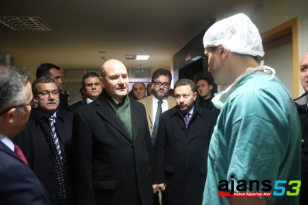Soylu ve beraberindekileri hastanenin acil servisi önünde, Rize Valisi Kemal Çeber, Trabzon Emniyet Müdürü Orhan Çevik ve diğer ilgililer karşıladı.