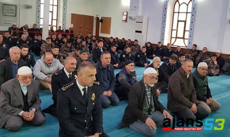 Rize'de makamında uğradığı silahlı saldırı sonucu şehit olan Emniyet Müdürü Altuğ Verdi (önde solda), saldırıda yaralanan Personel Şube Müdürü Ercan Polat (2. sıra sol 2) ile Türk Polis Teşkilatı'nın 173. kuruluş Yıldönümü ve 10 Nisan Polis Haftası kapsamında Şeyh Camisinde şehitler için okutulan mevlidi şerife katılmıştı. (arşiv)