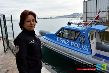 Samsun Emniyet Müdürlüğü Deniz Limanı Şube Müdürlüğünde görevli bot kaptanı Ayşe Okyak, denizdeki asayiş olaylarına müdahale ediyor.