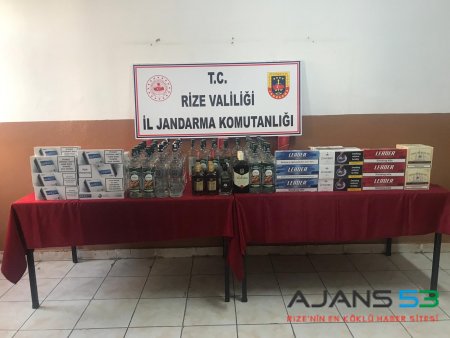 Rize'de, gümrük kaçağı 119 litre alkol ve 2 bin 375 paket sigara ele geçirildi.