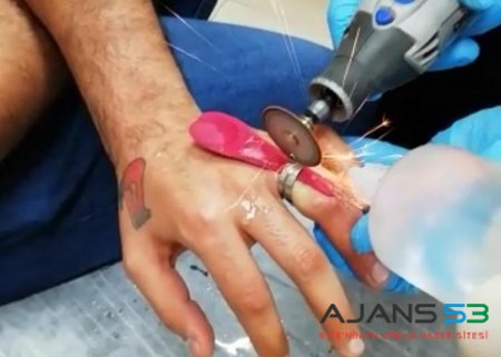 Hastaneye gelen ekipler, gerekli önlemleri aldıktan sonra yüzüğü spiral makinesiyle keserek çıkarttı.