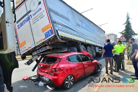 Çarpmanın etkisiyle savrulan otomobil, önünde seyreden ve sürücüsünün kimliği henüz belirlenemeyen 53 EK 261 plakalı tırın altına girdi.