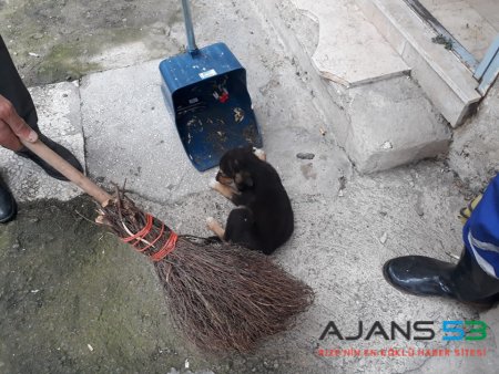 Rize'nin Kalkandere ilçesinde belediye temizlik personeli tarafından faraşa konularak dereye atılan köpek yavrusu, koruma altına alındı.