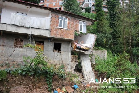 Rize'nin Ardeşen ilçesinde, toprak kayması nedeniyle bir ev kısmen çöktü.