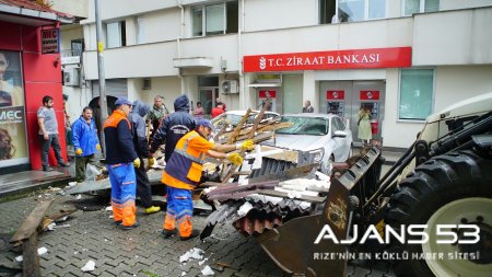 Çatı parçaları belediye ekiplerince kısa sürede kaldırıldı.