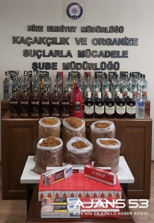 Rize İl Emniyet Müdürlüğü’nden yapılan açıklamada, Kaçakçılık ve Organize Suçlarla Mücadele (KOM) Şube Müdürlüğü ekiplerinin ülke genelinde eş zamanlı yapılan sigara ve alkol kaçakçılığı operasyonu kapsamında Rize Merkez ve İlçelerinde kaçak sigara, alkol ve tütün satışının önüne geçebilmek için il merkezi ve ilçelerde belirlenen 21 iş yerine eş zamanlı olarak yapılan aramalarda; çeşitli markalarda toplam 102 şişe kaçak içki, 21 adet 0.5 litrelik pet şişe içerisine doldurulmuş satışa hazır halde kaçak içki, çeşitli markalarda 160 paket kaçak sigara, 27,800 gr kıyılmış açık tütün, 3000 adet içi kıyılmış tütün ile doldurulmuş paketlenerek satışa hazır hale getirilmiş makaron sigara ve 1 adet ruhsatsız tabanca ele geçirildiği bildirildi.