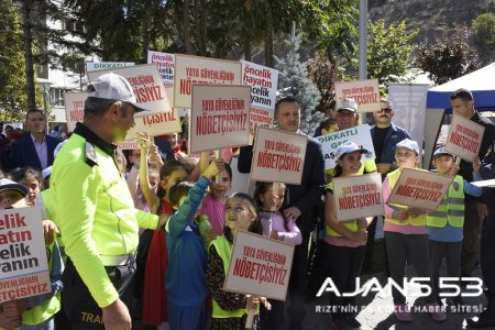Rize Vali Yardımcısı Ahmet Dalkıran, İl Jandarma Komutanı Kıdemli Albay Hakan Dedebağı, İl Emniyet Müdürü Nurettin Gökduman, Müdür Yardımcısı Nahit Karakaş ve çocuklar, Rize Belediyesi önünde gerçekleştirilen etkinlikte sürücülere broşür dağıttı.