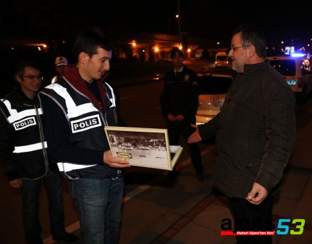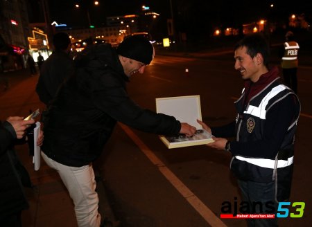 Rize il genelinde yılbaşı dolayısıyla uygulama ve kontrollerini artıran trafik ve asayiş ekipleri, uygulamada vatandaşlara çikolata verdi.