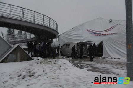 Rize’de yoğun kar yağışı ve gece çıkan fırtınanın etkisi ile fuar çadırı çöktü. Maddi hasar meydana geldi.
