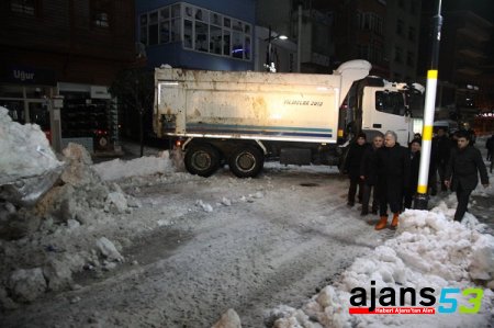 Ekipler gece itibari ile şehir merkezinde yoğunlaşarak Cumhuriyet Caddesi ve Atatürk Caddesi başta olmak üzere ana harter yollarda çalışmalarını sürdürdü. Kar yağışının Rize'de etkili olduğu süre içerisinde önemli bir toplantı için Ankara'da bulunan Rize Belediye Başkanı Prof. Dr. Reşat Kasap, Rize Belediyesi teknik ekibi ile sürekli telefonla irtibat içerisinde olarak çalışmaları takip etti.