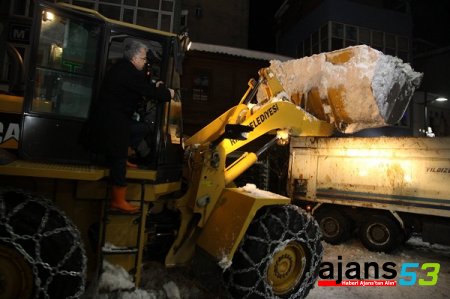 Rize'de yoğun hava muhalefeti sonucu yağan kar nedeni ile ulaşımın aksamaması için Rize Belediyesi ekipleri geceli gündüzlü çalışmalarını aralıksız sürdürüyor.