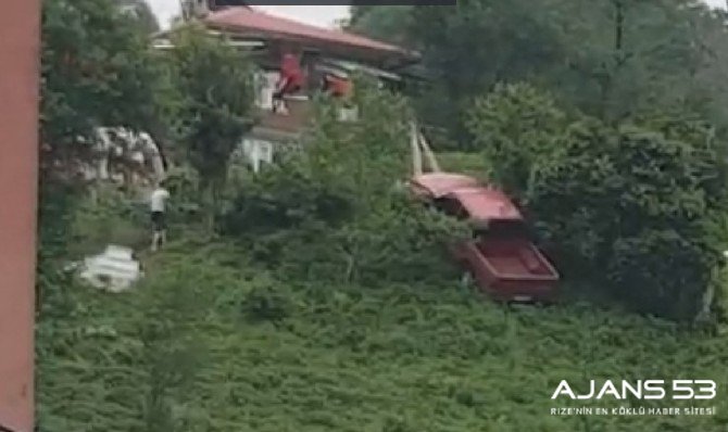 Çay toplamak için arazisine giden Burak Emre Çetinoğlu, aracını çalışır halede bırakarak araçtan indi. El frenini çektiği halde frenleri boşalan araç hareket ederek çay arazisine uçtu.