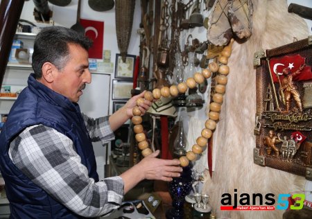 Rize'de 40 yıldır biriktirdiği antika eşya ve paraları iş yerinde sergileyen Osman Sadıkoğlu, müzeyi andıran dükkanından tarihi geçmişe de ışık tutuyor.