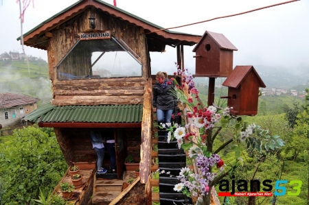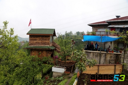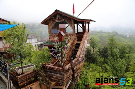 Rize merkez ilçeye bağlı Küçükköy'de yaşayan Serdar Karaömeroğlu, yapamayacağını iddia eden kuzenine inat, bir ceviz ağacının üzerine iki katlı ahşap yaptı.