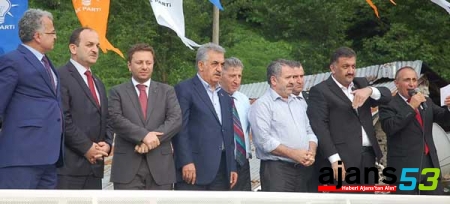 Eski Meclis Başkanı Köksal Toptan ise konuşmasında “ Bu dağlar bizim için önem arz etmekte, çocukluğumuz bu dağları tırmanmakla geçti, ilk okula giderken yol açılması için kazma kürek ile çalıştık. Şehre inmek için patıka yollardan iki saat yürürdük. Şimdi ise Bir taraftan dağlar delinirken diğer taraftan denizlerin altı delinmekte, bu sıhırlı gidişe devam etmek gerek. Bu nedenle 7 Haziran seçimleri bizim için önemli, Rize”de rekor kırdınız , artık rekoru yenilemenitz gerek” dedi.