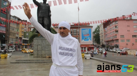 - CUMHURBAŞKANI RECEP TAYYİP ERDOĞAN’A İHANET EDİLDİĞİNİ DÜŞÜNEN RİZELİ MEVLÜT PEHLİVAN, KEFEN GİYİP EYLEM YAPTI
