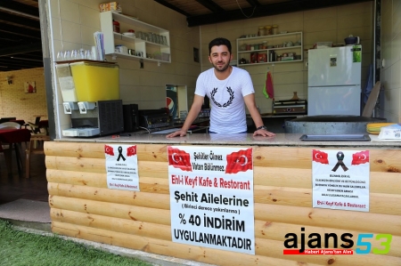 Rize'de bir cafe işletmecisi şehit anne, çocuk ve eşlerine yüzde 40 indirimli hizmet verecek.