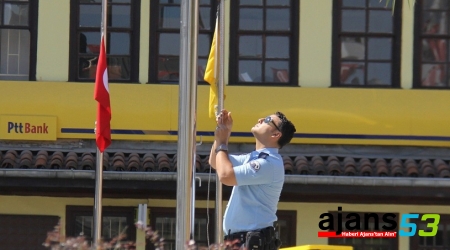 RİZE’DE BİR GRUP, YAS İLAN EDEREK BAYRAKLARI YARIYA İNDİRDİ
