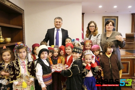 Merkez Müftü Mahallesi'nde bulunan Gülbahar Hatun Anaokulu Müdürü Fatma Kalemci, 5 yaş Sınıfı Öğretmeni Gamze Özdöver Karabiber ve okulun ana sınıfı öğrencileri, Vali Ersin Yazıcı'yı makamında ziyaret ettiler.