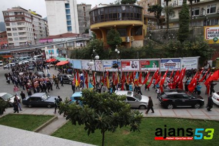 Rize'de, 29 Ekim Cumhuriyet Bayramı kutlamaları, Rize Belediye Bandosu eşliğinde halk yürüyüşü ve Atatürk Anıtına Çelenk sunumuyla başladı.