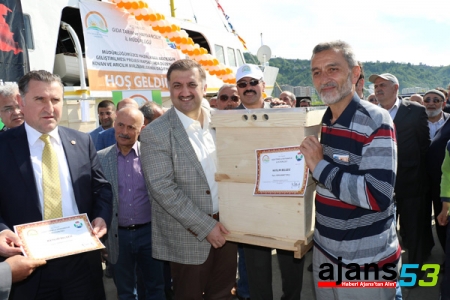 AK Parti Rize milletvekilleri Hasan Karal ve Osman Aşkın Bak, Gıda tarım il müdürlüğünün kovan dağıtım törenine katılarak kovan almaya hak kazanan arıcılara kovanlarını teslim ettiler.