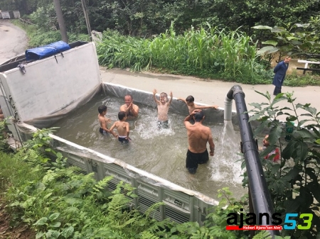 Ramazan Çepni yaptığı açıklamada, “Havalar çok sıcak. Bunalıyoruz. Deniz de köyümüze uzak. Derelerimiz yüzmek için elverişli ancak bu yöntem daha pratik oldu. Hem serinledik hem de eğlendik. Çocuklarda çok mutlu oldular” dedi.