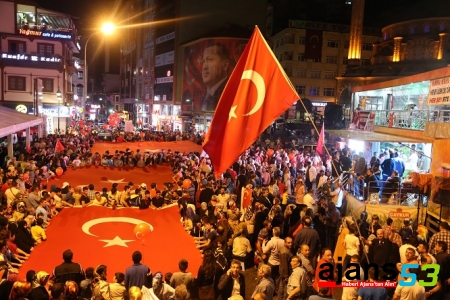 Rize Müftülüğüne ait panoda "adalet ve merhamet direnişi", "ümmetin birlik zamanı" ifadeleri de yer aldı. Alanda kurulan "Tarihe Not Bırakın" standında bulunan deftere vatandaşlar, darbe girişimiyle ilgili düşüncelerini yazdı.