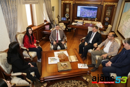 Başarılı 3 öğrenci ile birlikte Rize Sosyal Bilimler Lisesi Okul Müdürü Zekeriya Özdemir, Felsefe Grubu Öğretmeni Davut Çoşkun ve Okul Aile Birliği Başkanı Muhammet Kaçar, Vali Erdoğan Bektaş’ı makamında ziyaret etti. Öğrencilerin başarılarından gurur duyduğunu anlatan Vali Bektaş, akademik başarının yanında özellikle sosyal alanlarda projeler geliştirmesinin önemine değindi, öğrencileri ve okul yönetimini tebrik etti. Vali Bektaş öğrencilere hediye vererek Ankara’daki finallerde başlarılar diledi.