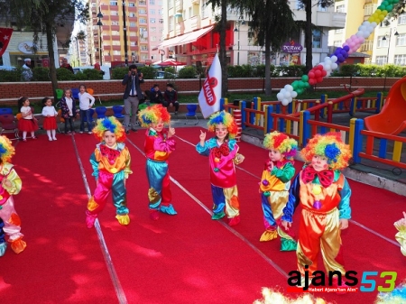 Yeşil Çay Kreş ve Gündüz Bakım Evinde eğitim gören 1 ile 4 yaş arasındaki minikler 23 Nisan bayramı coşkusunu hava şartları nedeniyle geç de olsa coşku ile kutladılar.