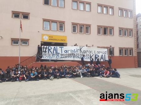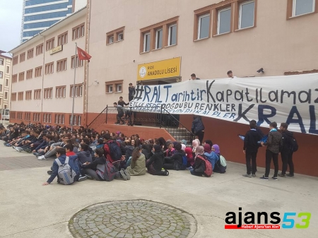 Rize Anadolu Lisesi öğrencileri, okullarının kapatılmaması için okul bahçesinde oturma eylemi yaptı.