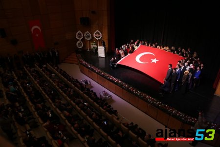 Cumhuriyet Meydanı'ndaki Atatürk Anıtı'na çelenk sunulmasıyla başlayan tören, Rize İsmail Kahraman Kültür Merkezi'nde devam edildi.