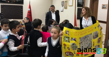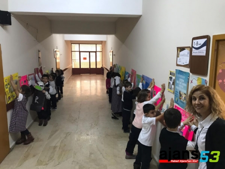 Öğrenciler farkındalık projesinin ardından düzenledikleri pankartları okul koridorlarına asarak Çocuk Hakları Gününü kutladılar.