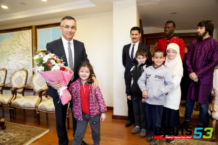 Rize’de ki ilk ve orta dereceli okullarda eğitim gören Suriyeli ve Iraklı öğrenciler ile Recep Tayyip Erdoğan Üniversitesi İlahiyat Fakültesinde eğitim gören Burkina Fasolu ve Hindistan Keşmirli öğrenciler, İl Göç İdaresi Müdür Vekili Serap Aydın ile birlikte Rize Valisi Kemal Çeber’i Makamında ziyaret etti.