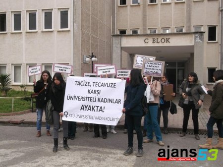 Konuyla ilgili olarak Fatih Eğitim Fakültesi’nde basın açıklaması yapan KTÜ Üniversiteli Kadın Kollektifi adına basın açıklaması yapan Mehtap Yapar, üç kız arkadaşlarının okul yolunda tacize uğradığını iddia ederek “15 Aralık Pazartesi günü akşamı 19.30-20.00 saatleri arasında eğitim fakültesi öğrencisi üç kadın arkadaşımız okulun yakınındaki bir market civarında tacize uğradılar. Olayın ardından polisi arayan kadınlar tacizcinin nasıl birisi olduğunu anlattıklarında ise aynı tacizciden daha öncede başka kadınlara da tacizde bulunduğu ortaya çıktı. Hatta aynı yerde başka taciz vakalarının da olduğu öğrenildi. Ve nasıl oluyor da bu tacizci yakalanamıyor diye soruyoruz. Daha önce aynı yerde başka kadınlarda taciz edildiyse neden orada güvenlik artırılmadı? Tacizciyi yakaladıklarında kendi tabirleriyle’kulaklarını çekeceğiz’ diyenler, gerçekten yakalandığında tacizci gerekli cezayı alacak mı? Ya da yakalanması için daha kaç kadının böyle bir durumla karşı karşıya gelmesi gerekiyor?. Üniversiteli kadınlar olarak her gün fakülteye gelirken, yurdumuza giderken veya her dışarı çıktığımızda tacizle, şiddetle karşı karşıyayız” dedi.
