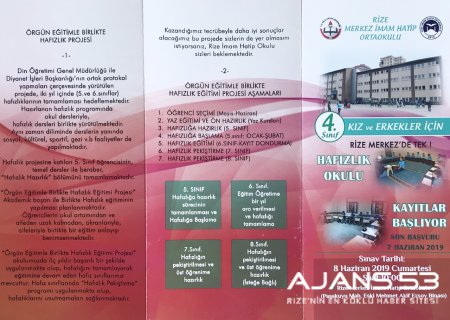Bu hafızlık projesini ilimizde Rize Merkez İmam Hatip ortaokulu yürütmektedir.