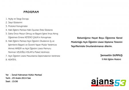 » RİZE'DE AÇIK ÖĞRETİM LİSESİ DİPLOMA TÖRENİ YAPILACAK