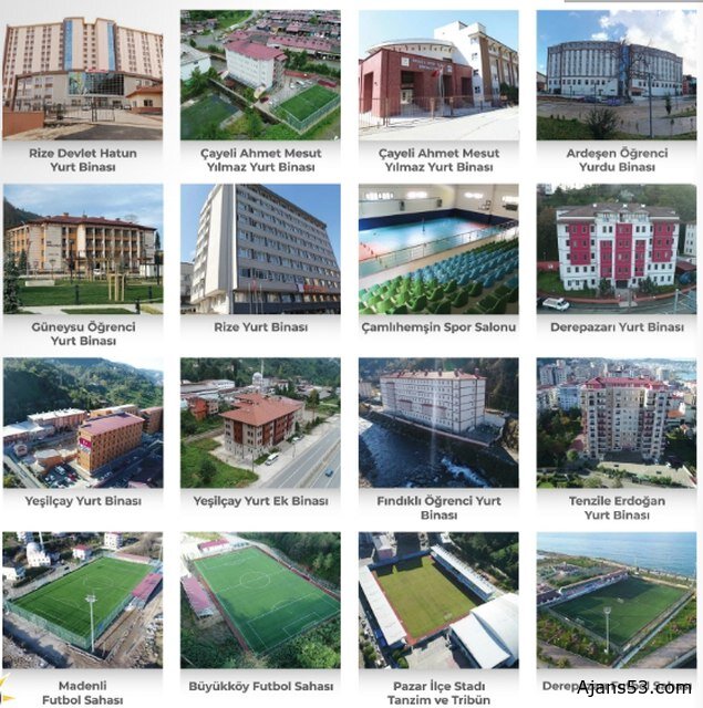 “Rize’mizde spor tesisleri ve öğrenci yurtları olmak üzere toplam 30 yeni tesisi gençliğimizin hizmetine sunduk. Bunlar arasında spor salonları, yüzme havuzları, gençlik merkezleri, sporcu kamp merkezleri, kano ve rafting merkezleri, stadyumlar, tenis kortları, öğrenci yurtları yer aldı.”