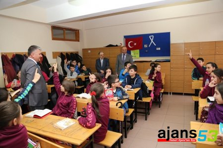 Vali Yazıcı, sınıfta öğrencilerle sohbet ederek, öğrencilere çeşitli sorular sordu. Vali Yazıcı’nın, öğrencilere dikkat gerektiren sorular sorması ve aldığı cevaplarla birlikte gelişen esprili diyaloglar gülüşmelere neden oldu.