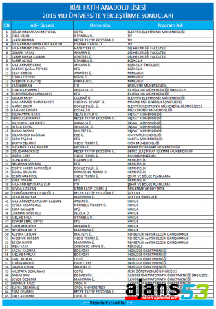Rize Fatih Anadolu Lisesi Üniversite Yerleştirmelerindeki başarısını artırarak Rize’de eğitimde fark yapmaya devam ediyor.