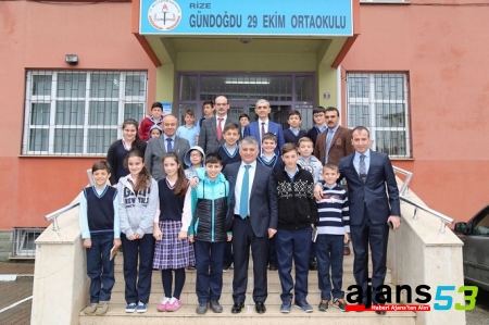 Düzenli olarak okulları ziyaret ettiğini belirten Vali Yazıcı, "Bugün de 29 Ekim Ortaokulumuzu ziyaret etme fırsatı bulduk, siz değerli öğretmen arkadaşlarla bir araya gelmekten dolayı mutluyum. Eğitimin tüm paydaşlarının tamamının katılımıyla iki yıldan beri Rize´de Eğitime Nitelik Kazandırma (RENK) Projesi´ni uyguluyoruz. Bu çalışmalar sonucunda da çok iyi sonuçlar almaya başladık. Hem TEOG sınavında, hem de üniversite sınavında başarı grafiğimiz yükseldi. Bu projeye devam edeceğiz. Üç yıl sonunda bu sistem bir rayına oturarak devam edecektir. Kitap okuma sayımız da arttı. Okullarımıza giderek öğrencilerimizle birlikte kitap okuyarak öğrencilerin kitaplarla daha yakın olmalarını derslerinin yanında kitaplarla arkadaş olmalarını sağlıyoruz. Bu etkinlik, öğrenciler tarafından benimsendi. Bu kapsamda RENK Projesi stratejik bir öneme sahiptir "şeklinde konuştu.