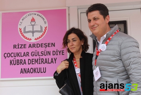 Bursalı iş adamı Mustafa Demiralay, eşi Kübra Demiralay için doğum günü hediyesi olarak Rize’de ismini taşıyan bir anaokulu yaptırdı.