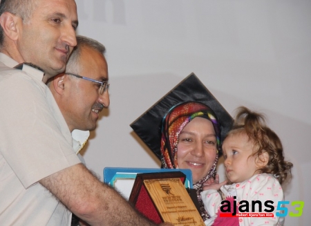Konuşmaların ardından mezuniyete hak kazanan öğrencilere mezuniyet belgeleri verildi. İlahiyat Fakültesi mezunlarından Erzurum nüfusuna kayıtlı öğrenci Refike Yılmaz, diplomasını almak üzere sahneye kucağındaki Sıla isimli 2 yaşındaki bebeği ile çıktı. Yılmaz diplomasını Rize İl Jandarma Komutanı Jandarma Albay Semih Coşkun’un elinden aldı. Yılmaz yaptığı açıklamada, “Diplomayı almaya kızımla birlikte geldim. Mezun oluyorum. Bitiyor inşallah. Mutluyuz” dedi.
