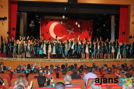 Mezuniyet töreni öğrenci andı ve ardından kep fırlatma töreni ile son buldu.