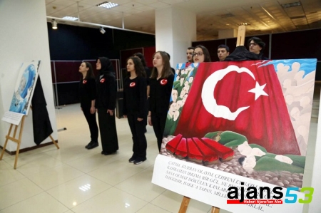 RİZE’de Sosyal Bilimler Lisesi tarafından İstiklal Marşı'nın kabulünün 96'ncı yıl dönümü ve Mehmet Akif Ersoy'u Anma günü etkinlikleri kapsamında İstiklal Marşı temalı resim sergisi açıldı.