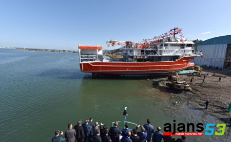 Trabzon’un Sürmene ilçesindeki Yeniçam Tersane alanında Başaran Gemi Sanayi’nin Ergün Kardeşler Balıkçılık için ürettiği 50 metrelik balıkçı gemisi 'Margo Hüseyin', düzenlenen törenle denize indirildi.