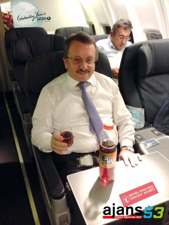 İmdat Sütlüoğlu uçakta DİDİ içmenin keyfini yaşadı.